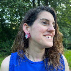Pendiente en metacrilato dorado espejo para la caracola y amarillo pastel para la mini estrella.