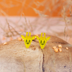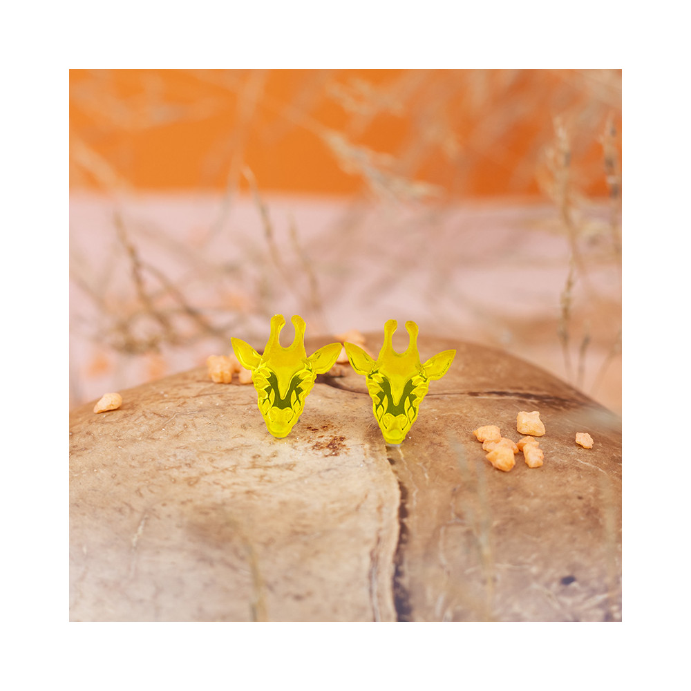 ok2.png Jirafa pequeña en metacrilato en espejo en color amarillo grabado. Cierre de presión en acero inoxidable hipoalergénico.