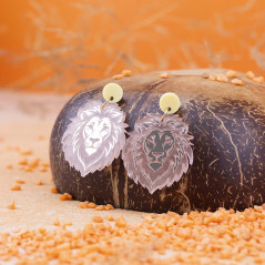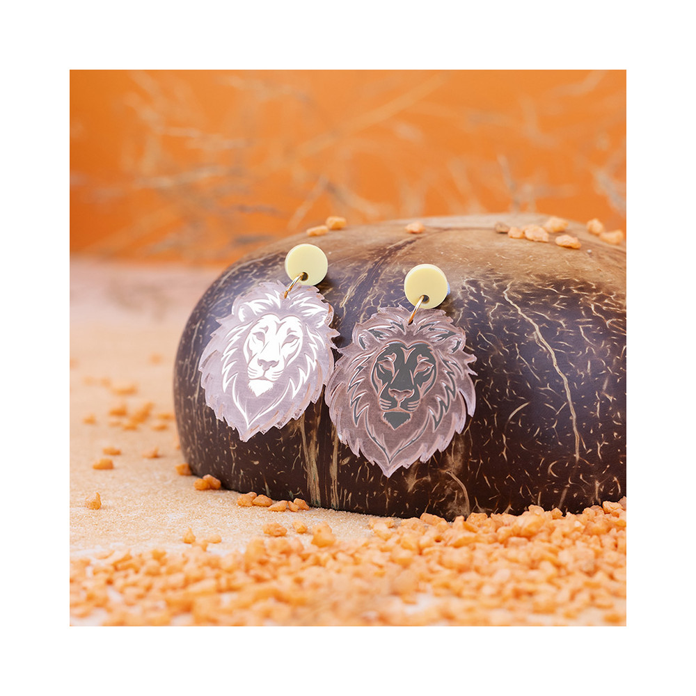 ok2.png Leones en metacrilato de espejo oro rosa grabado a todo detalle. Cierre de presión en acero inoxidable hipoalergénico.